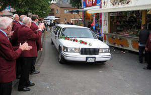 Eine riesige weiße amerikanische Stretch-Limousine mit abgedunkelten Scheiben erregte am Samstagabend bei der Fahrt von der Florastraße zum St. Rochus-Platz Aufsehen in Heiligenhaus. Unterwegs waren aber weder Regierungs- noch Showgrößen. Vielmehr ließ der MGV Sängerchor mit dem Lincoln Gefährt seine Jubilare 2005 vom Sängerheim zum nahen Festzelt chauffieren. Die Möglichkeit dazu hatte Ex-Karnevalsprinz Achim Geißler in seinem Bekanntenkreis gefunden und spontan dem Chor bzw. seinen besonders verdienten Mitgliedern bereitgestellt.